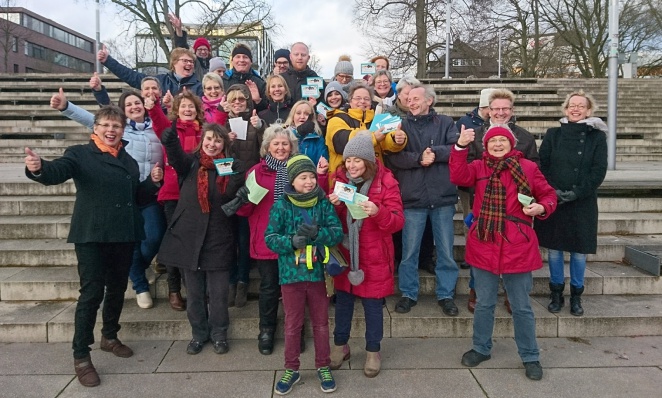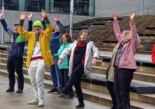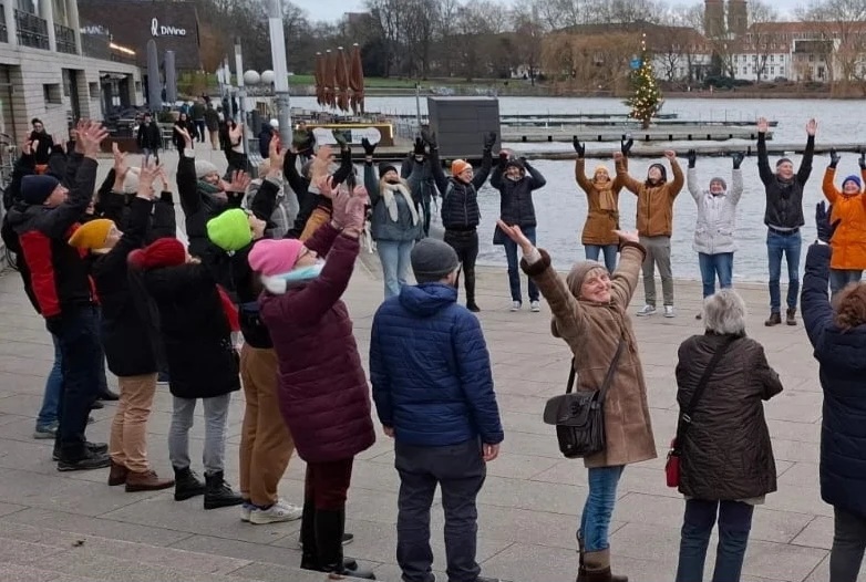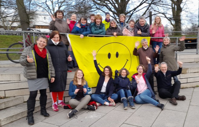 Das Neujahrslachen ist eine gemeinsame Veranstaltung des Lachtreff Münster und der Lachyoga-Lehrerin Veronika Spogis