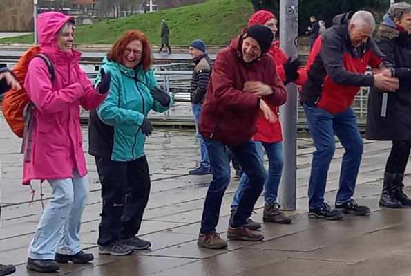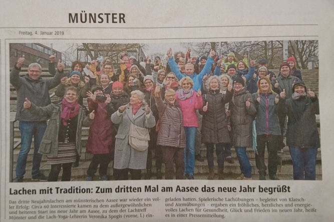 Das Neujahrslachen 2025 war wieder eine gemeinsame Veranstaltung des Lachtreff Münster und der Lachyoga-Lehrerin Veronika Spogis .