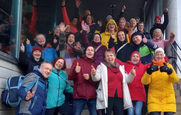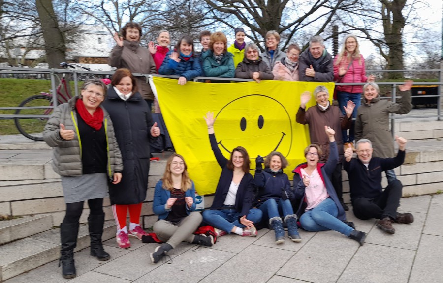 Hier ein Teil der 50 lachfreudligen Menschen, die energievoll und fröhlich mit uns an